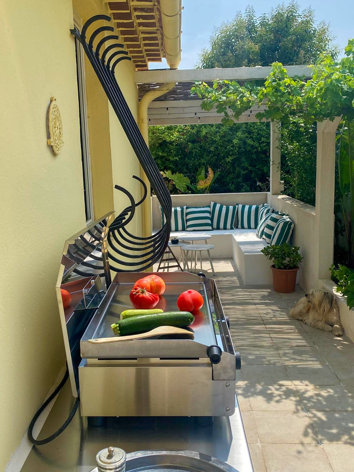 Two-burner plancha, American fridge, convection oven